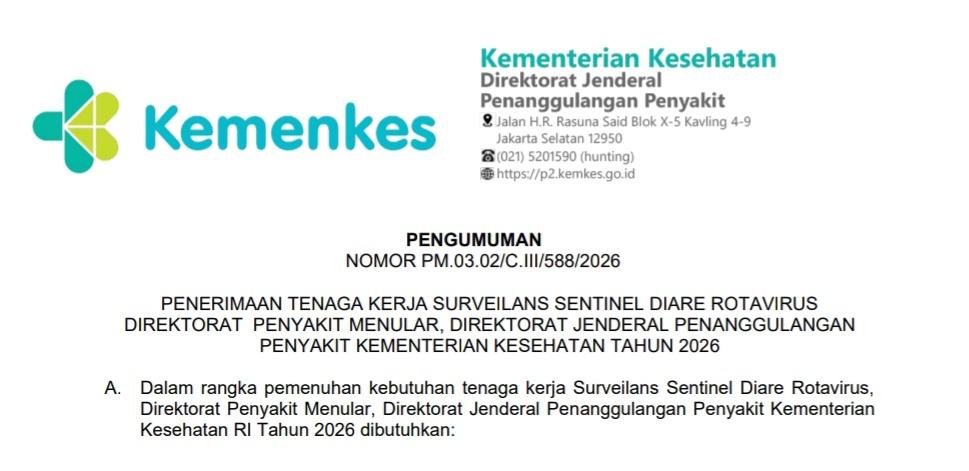 PENGUMUMAN REKRUTMEN TENAGA KERJA SURVEILANS SENTINEL DIARE ROTAVIRUS
