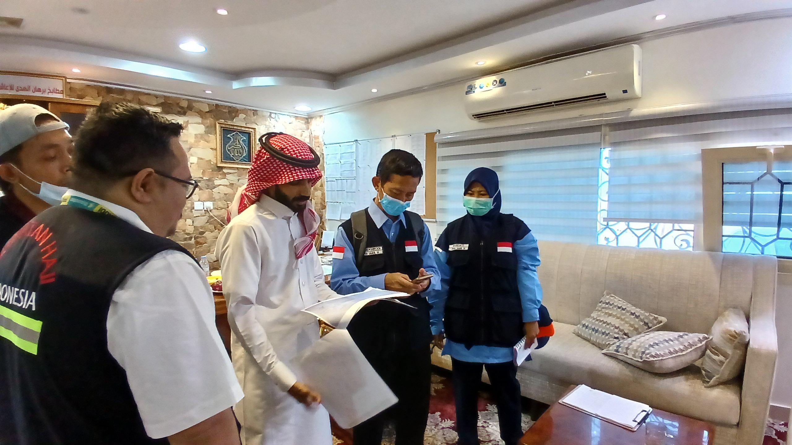 Sedangkan, pemeriksaan di hotel/pemondokan jemaah meliputi kondisi bangunan (lantai, dinding, pintu, plafon, ventilasi); cek suhu, kelembaban dan pencahayaan; kebersihan kamar mandi dan toilet; mengukur kualitas dan kuantitas air bersih; tempat pengelolaan sampah; dan pemeriksaan vektor penular penyakit (lalat, tikus, kecoa).